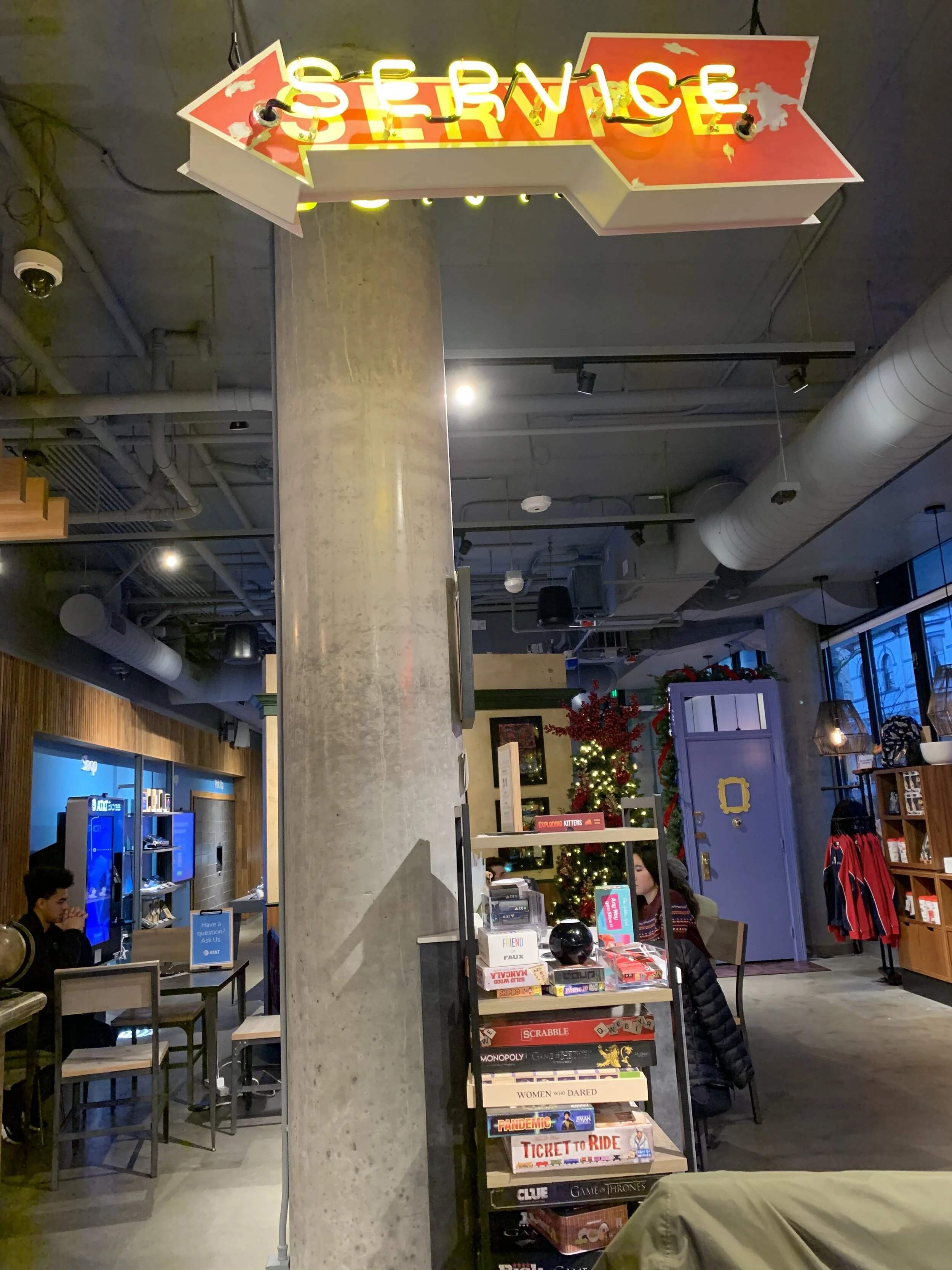 I wreszcie Seattle. W 2019 roku obchodziliśmy 25 rocznicę serialu i właśnie wtedy w kawiarni mieszczącej się w budynku sieci komórkowej At&T, na okres przedświąteczny zmieniono wystrój na ten znany z Central Perk. Tutaj można się było poczuć jakbyśmy byli na planie świątecznego odcinka Przyjaciół, z piękną choinką, gitarą czekającą na ochotnika który zaśpiewa “Smelly cat”, quizami i oczywiście pyszną kawą.